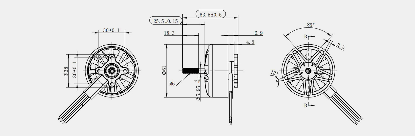 | Max. P (W) | Jännite (V) | Max. minä (A) | KV | Tyhjävirta (A) | Resistanssi (mΩ) | puolalaiset | Moottorin himm. (mm) | Staattorin himm. (mm) | Asennus (mm) | N.W. (g) | Prop. (tuumaa) | ||||||||||||||